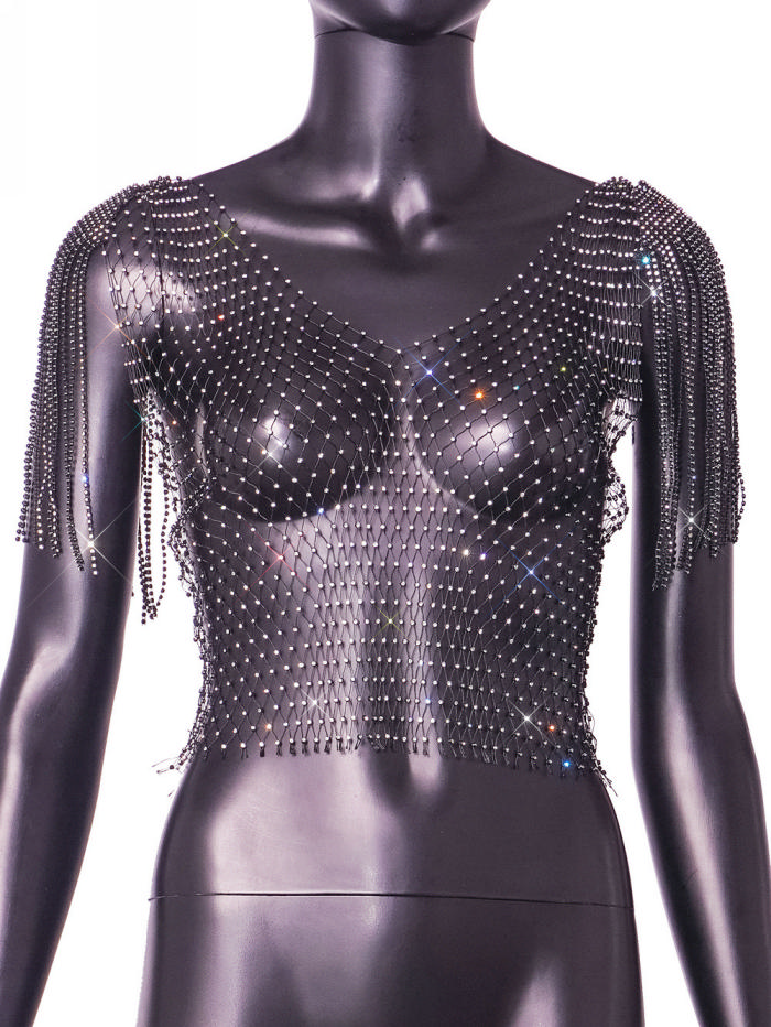 (Only Tops)(Real Image)2023 Styles Women Sexy&Fashion Autumn/Winter TikTok&Instagram Styles Sequins Tassel TopsSKU: #CF90005-1