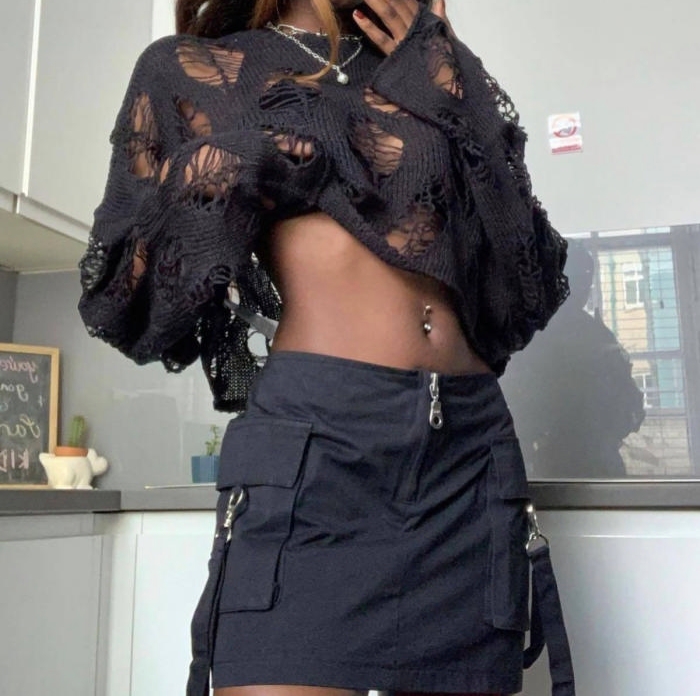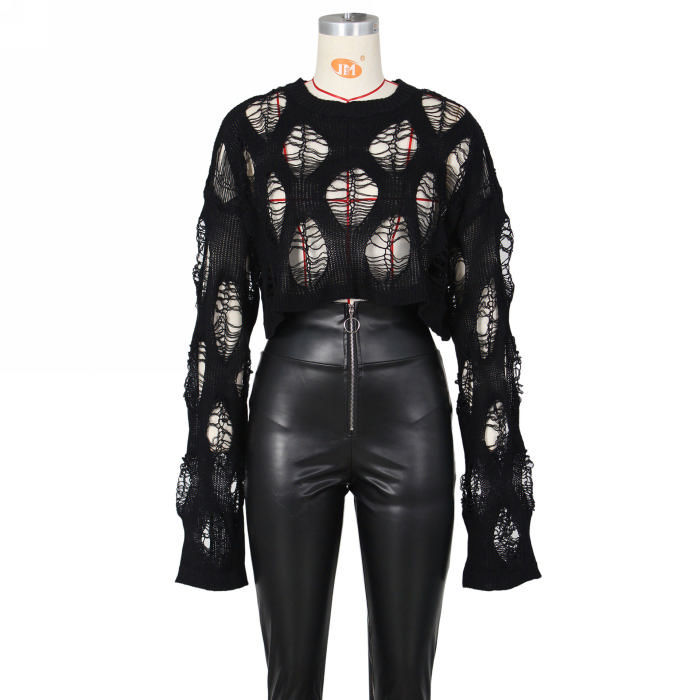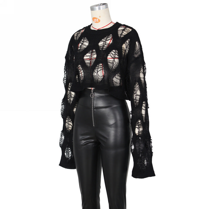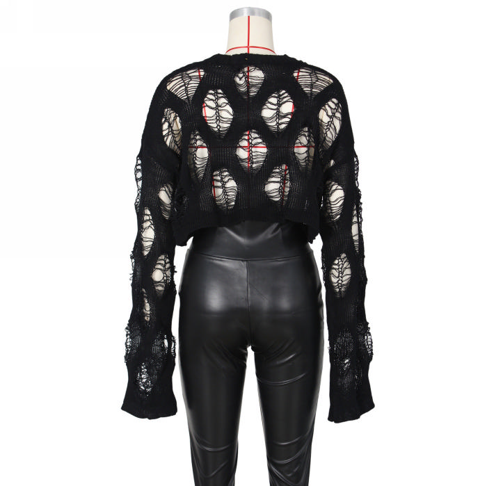 (Only Tops)(Real Image)2023 Styles Women Sexy&Fashion Autumn/Winter TikTok&Instagram Styles Sweater Ripped TopsSKU: #XF23047-1