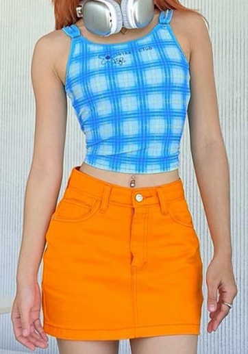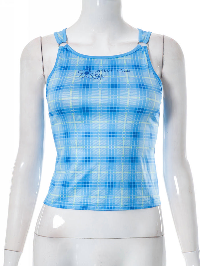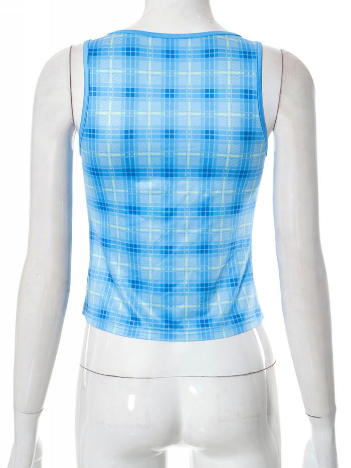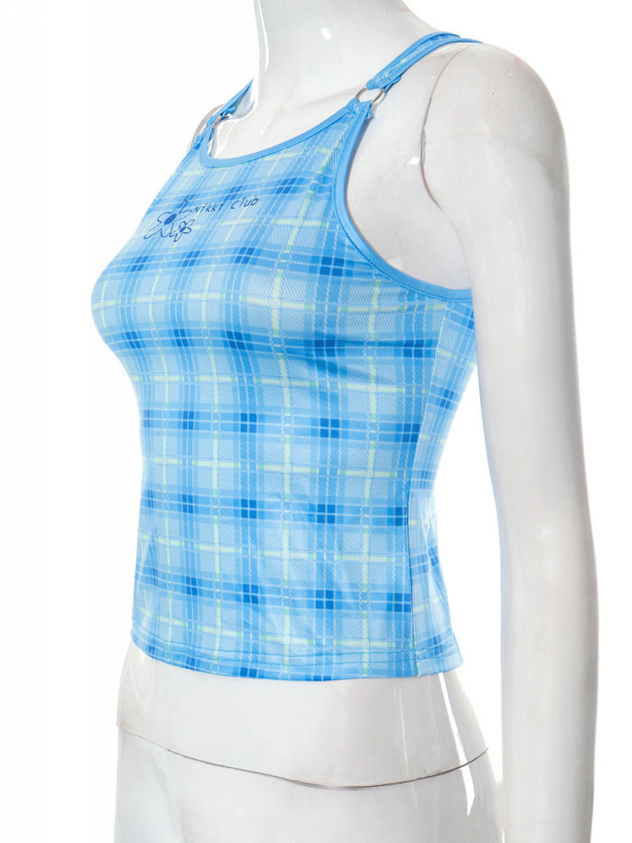 (Only Tops)(Real Image)2023 Styles Women Sexy&Fashion Spring&Summer TikTok&Instagram Styles Blue Plaid Tank TopsSKU: #CF76115-1