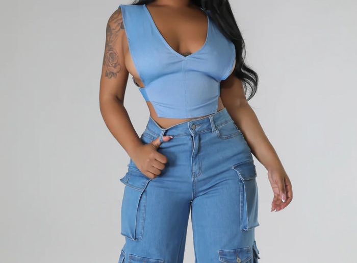 (Only Tops)(Real Image)2023 Styles Women Sexy&Fashion Spring&Summer TikTok&Instagram Styles Blue TopsSKU: #CF59543-1