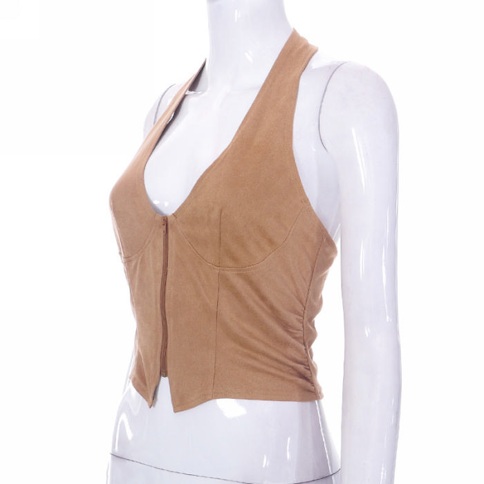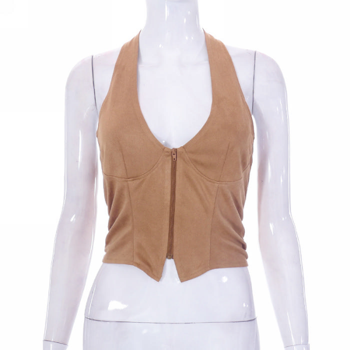 (Only Tops)(Real Image)2023 Styles Women Sexy&Fashion Spring&Summer TikTok&Instagram Styles Front Zipper Coffee TopsSKU: #CF68220-1