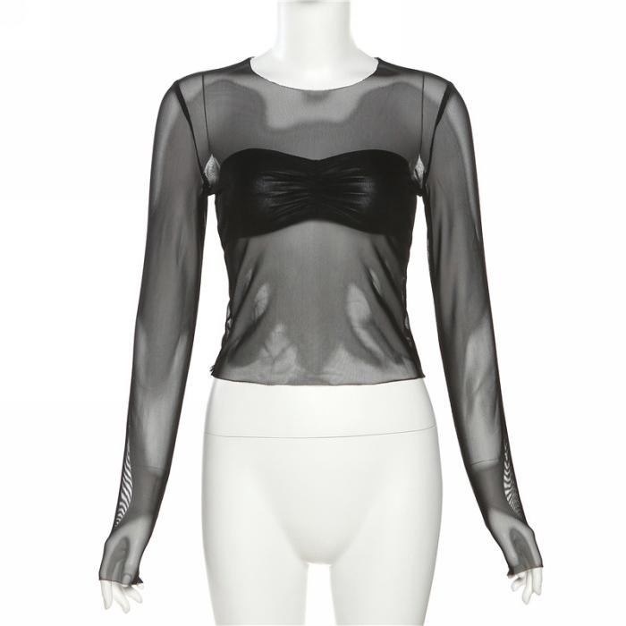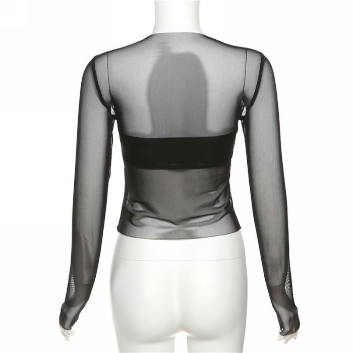 (Only Tops )(Real Image)2023 Styles Women Sexy&Fashion Spring&Summer TikTok&Instagram Styles Mesh Long Sleeve TopsSKU: #CF77160-1