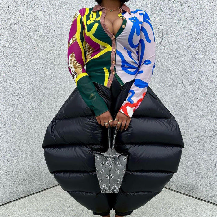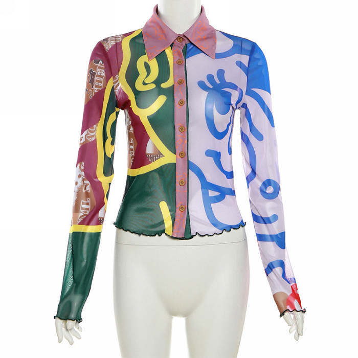 (Only Tops)(Real Image)2023 Styles Women Sexy&Fashion Spring&Summer TikTok&Instagram Styles Print Front Button ShirtsSKU: #CF77439-1