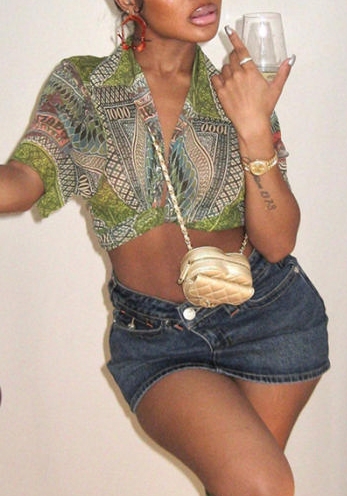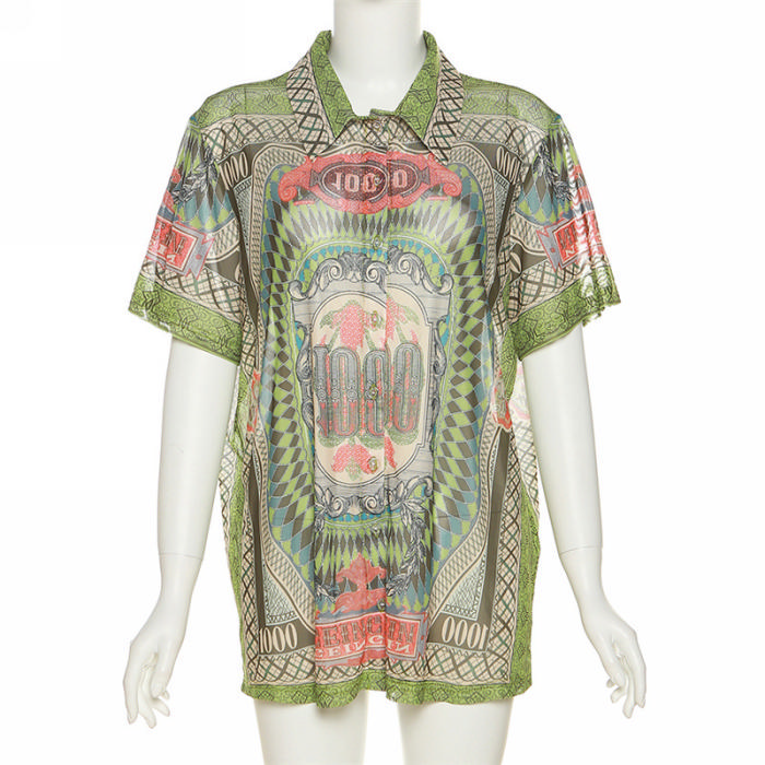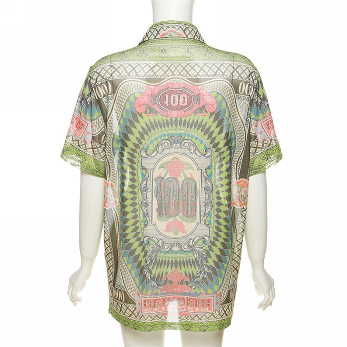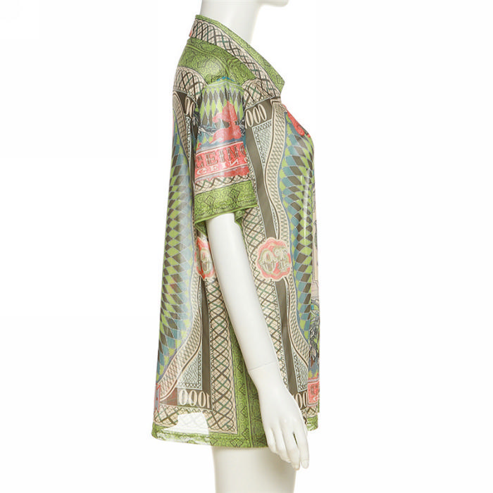 (Only Tops)(Real Image)2023 Styles Women Sexy&Fashion Spring&Summer TikTok&Instagram Styles Print Green ShirtsSKU: #CF83074-1