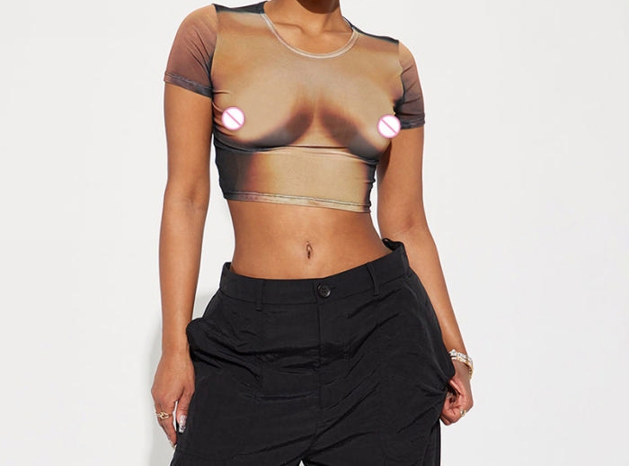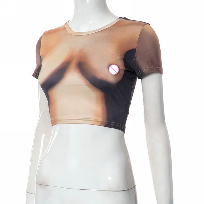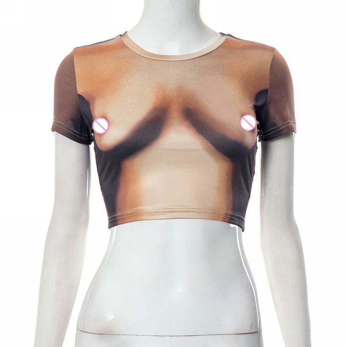 (Only Tops)(Real Image)2023 Styles Women Sexy&Fashion Spring&Summer TikTok&Instagram Styles Print Short Sleeve Tank TopshopSKU: #CF80095-1