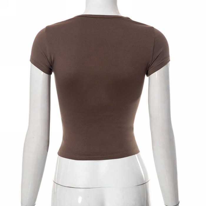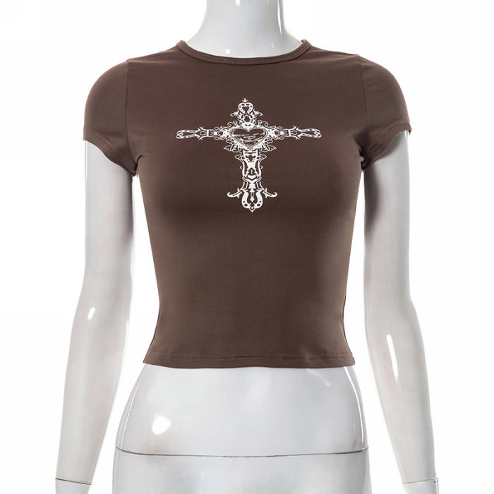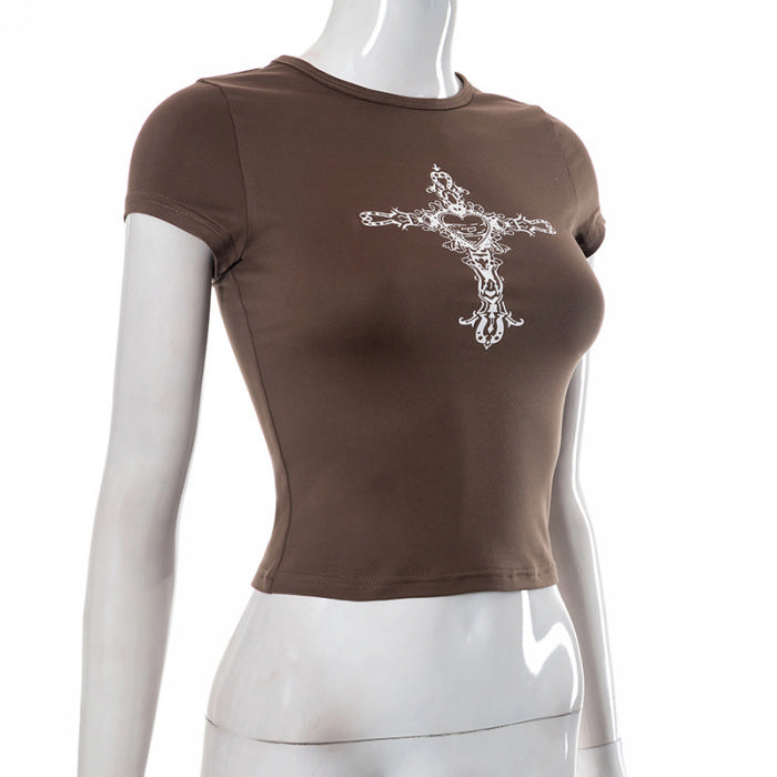 (Only Tops)(Real Image)2023 Styles Women Sexy&Fashion Spring&Summer TikTok&Instagram Styles Short Sleeve Print TeeSKU: #CF76105-1