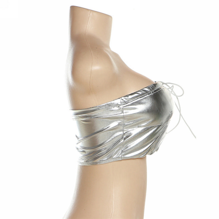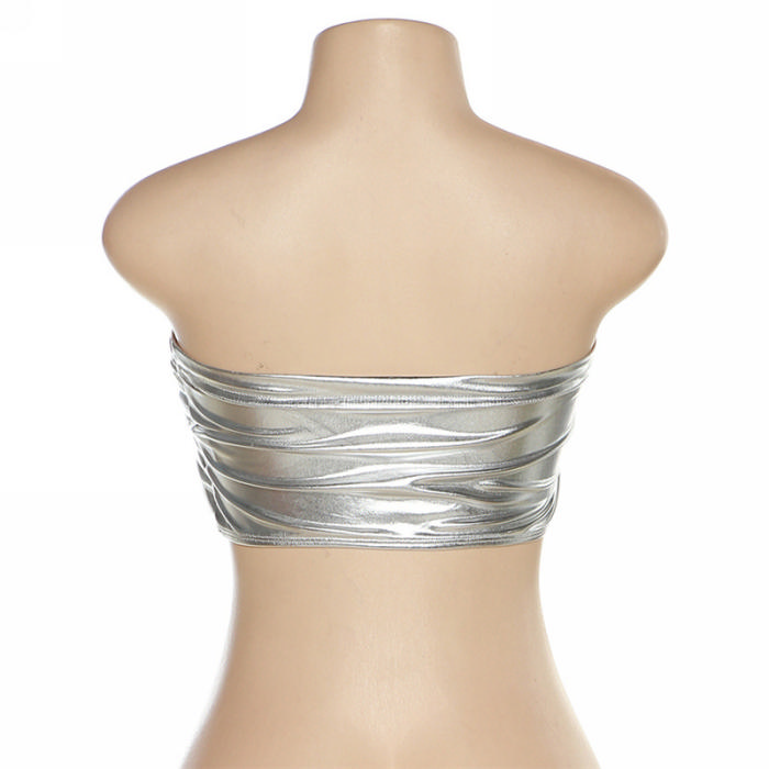 (Only Tops)(Real Image)2023 Styles Women Sexy&Fashion Spring&Summer TikTok&Instagram Styles Silver Tube TopsSKU: #CF77165-1