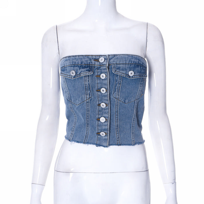 (Only Tops)(Real Image)2023 Styles Women Sexy&Fashion Spring&Summer TikTok&Instagram Styles Tube Jeans TopsSKU: #CF47487-1