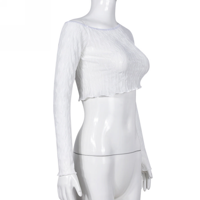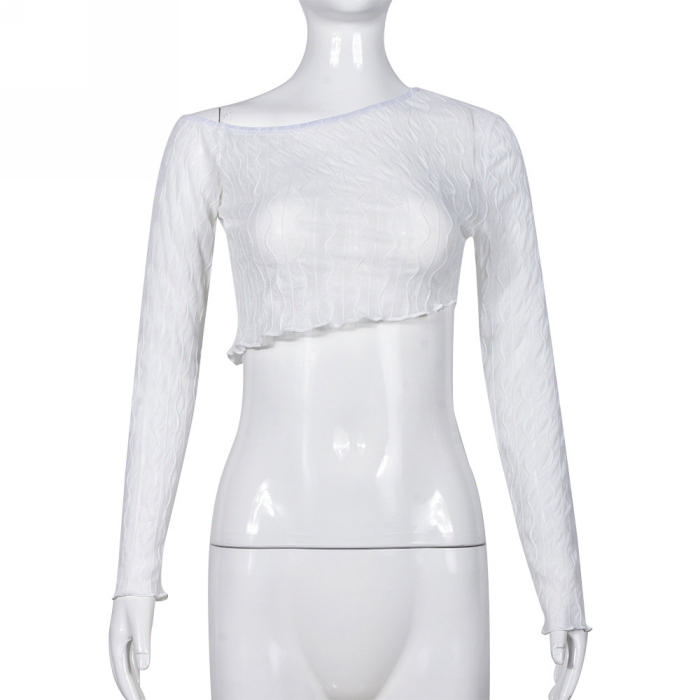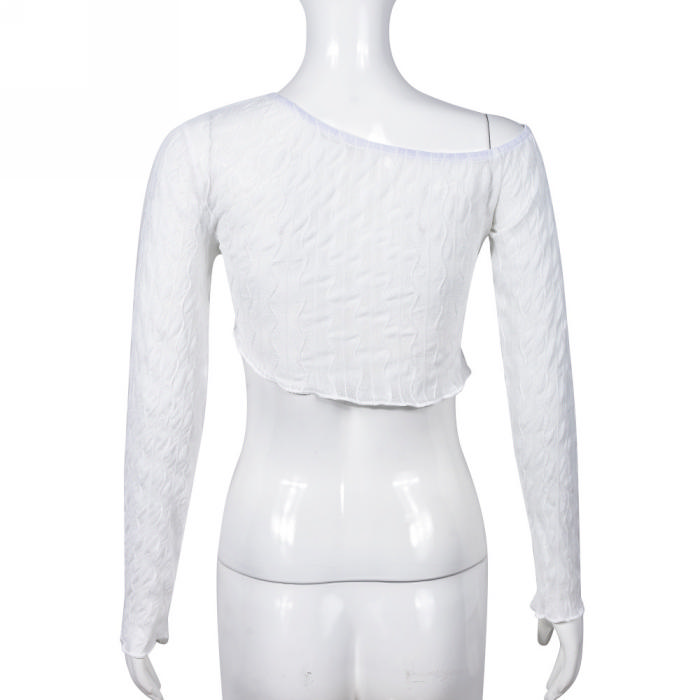 (Only Tops)(Real Image)2023 Styles Women Sexy&Fashion Spring&Summer TikTok&Instagram Styles White Mesh Long Sleeve TopsSKU: #CF59575-1