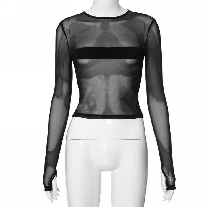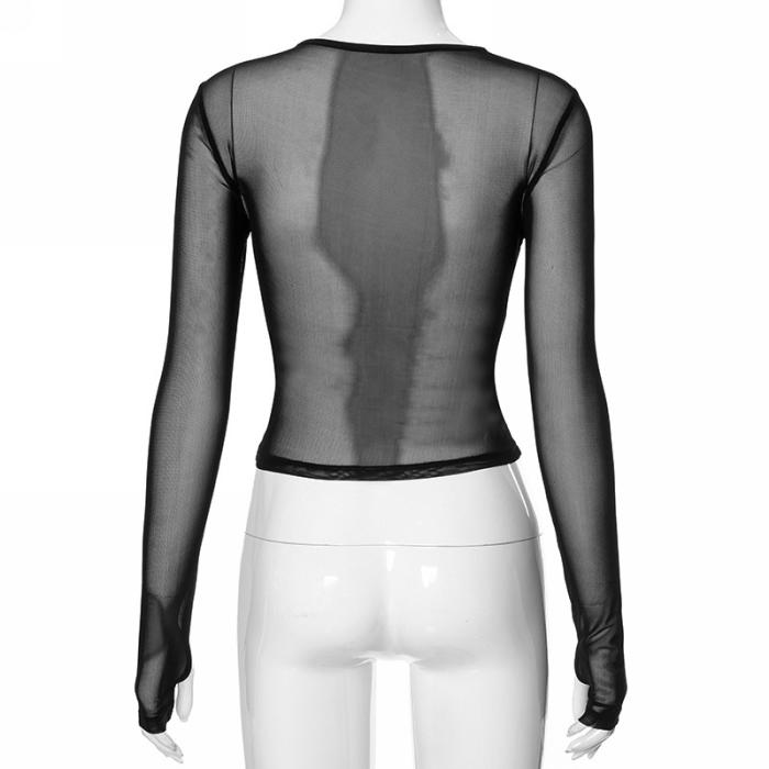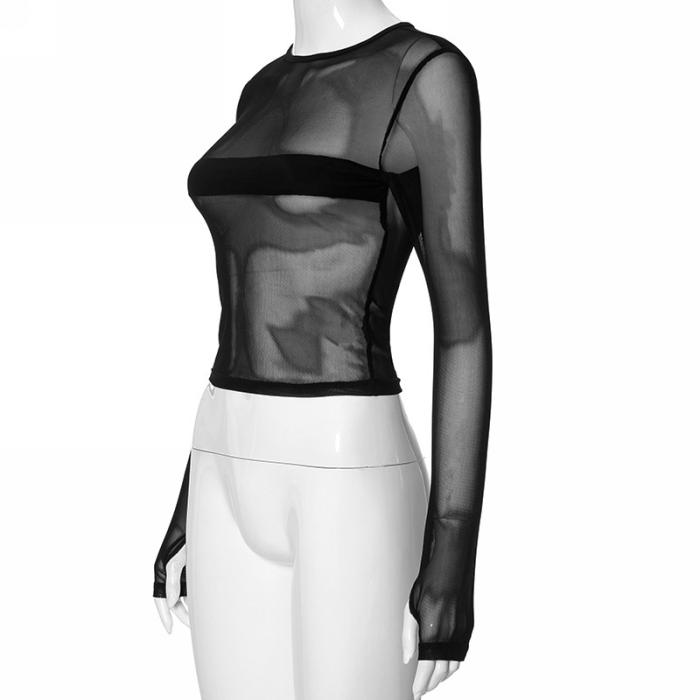 (Only Tops)(Real Image)2024 Styles Women Sexy&Fashion Sprint/Summer TikTok&Instagram Styles Mesh Long Sleeve See Through TopsSKU: #CF92006-1