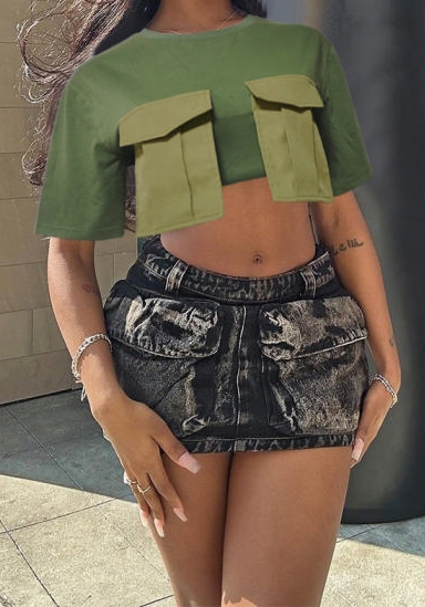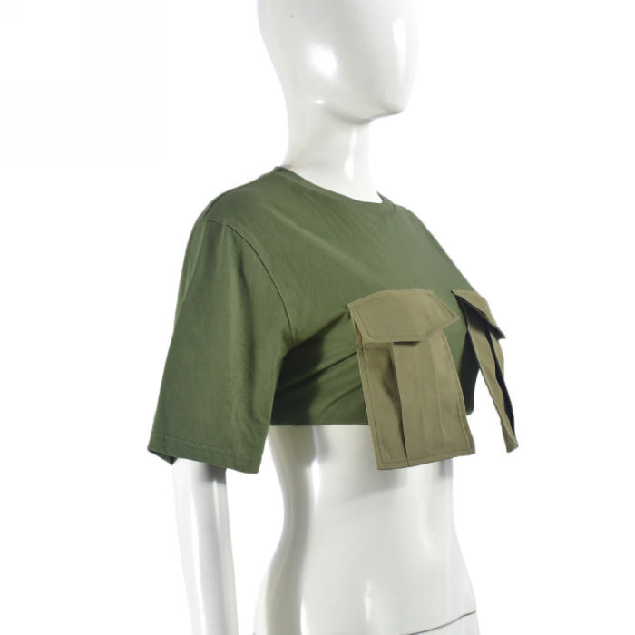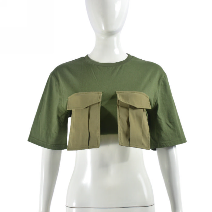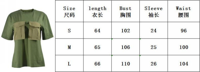 (Only Tops,Real Image)2024 Styles Women Summer Color-Blocked Pocket Round Neck Short Sleeve Tank TopsSKU: #CF75081-1