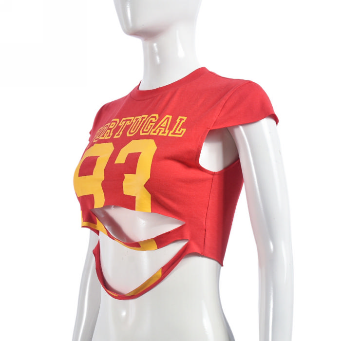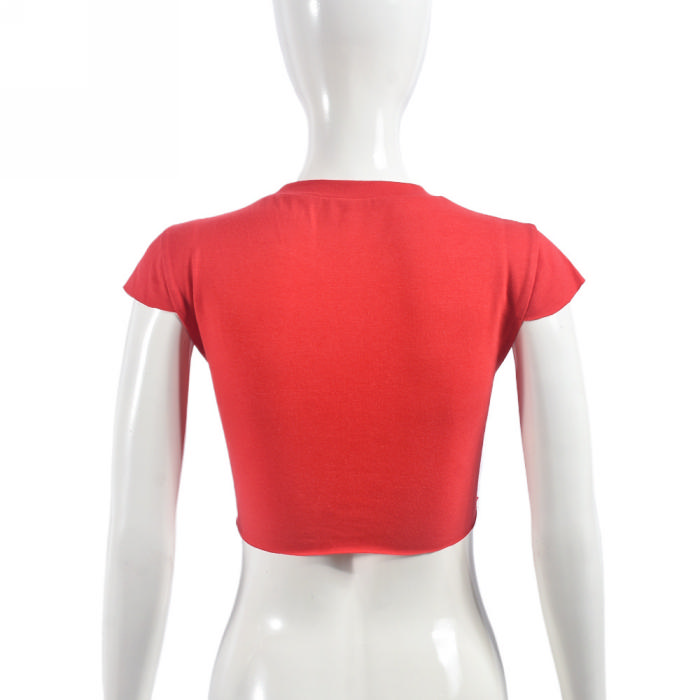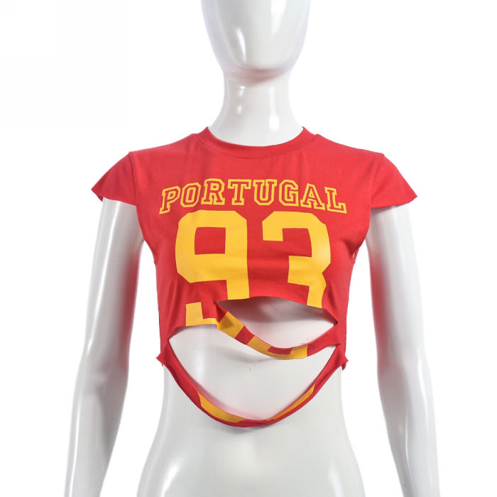 (Only Tops,Real Image)2024 Styles Women Summer Crop Top Distressed Print Western Style Round Neck T-ShirtSKU: #CF75054-1