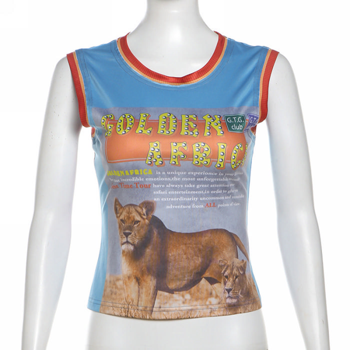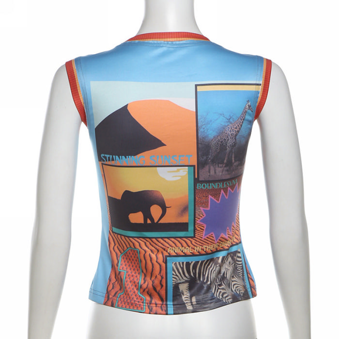 (Only Tops,Real Image)2024 Styles Women Summer Fashion Sexy Crop Tight Slimming Vest Printed Tank TopSKU: #CF77825-1