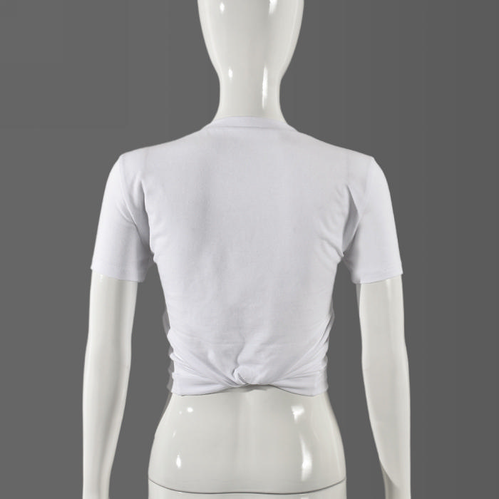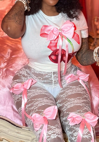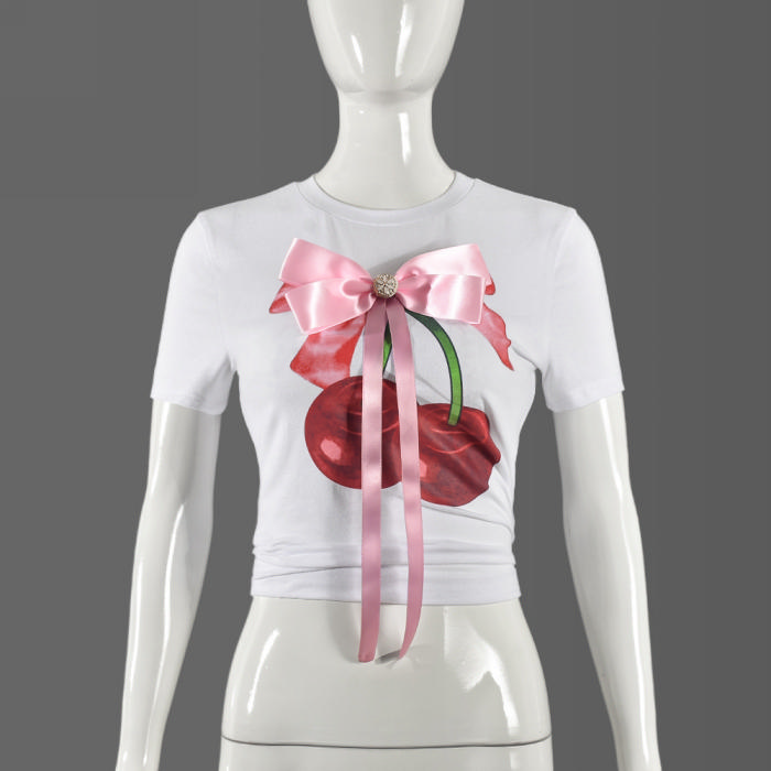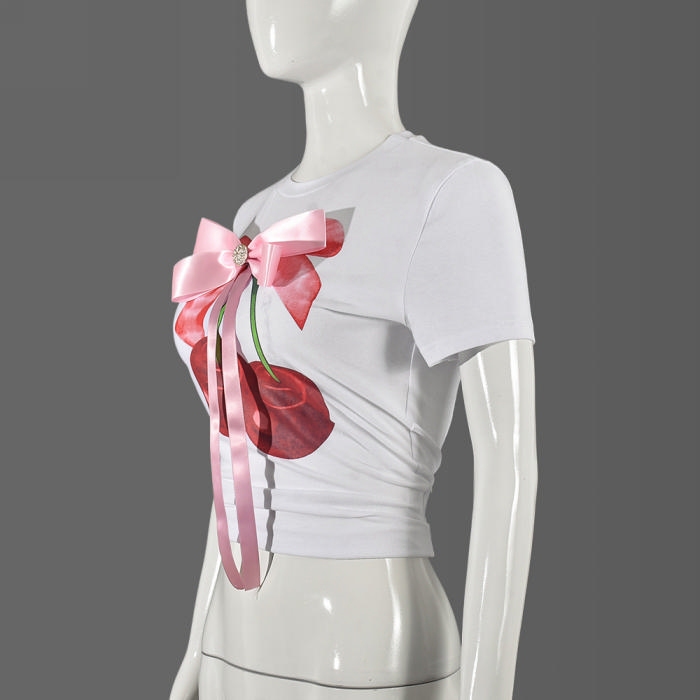 (Only Tops,Real Image)2024 Styles Women Summer New Floral Print Round Neck Bow Detail T-ShirtSKU: #CF59824-1