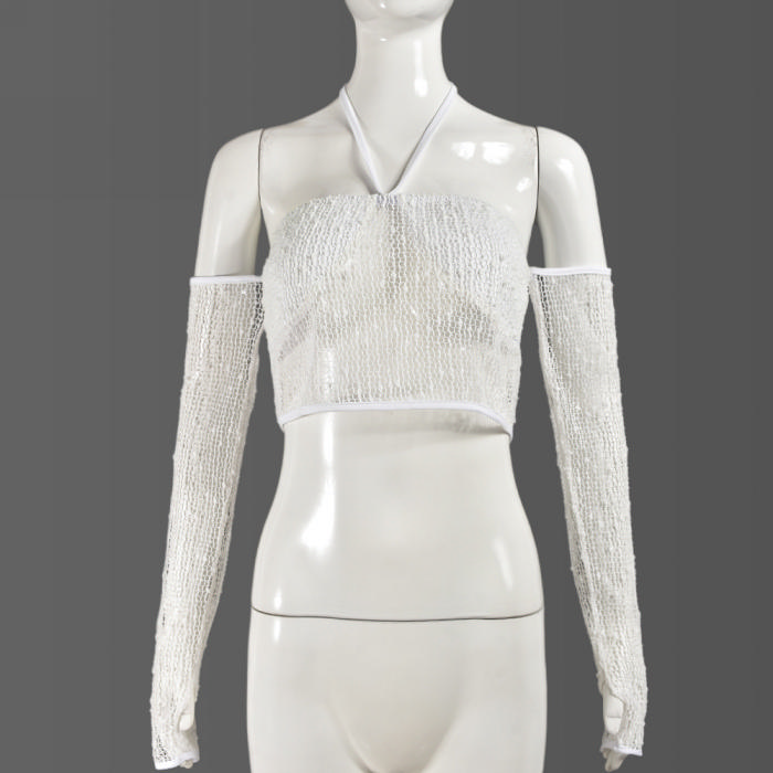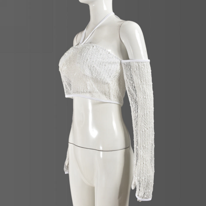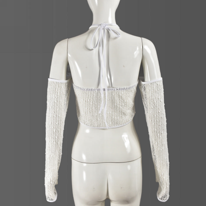 (Only Tops,Real Image)2024 Styles Women Summer Open Back Crop Top with Tied Sheer Long SleevesSKU: #CF75072-1