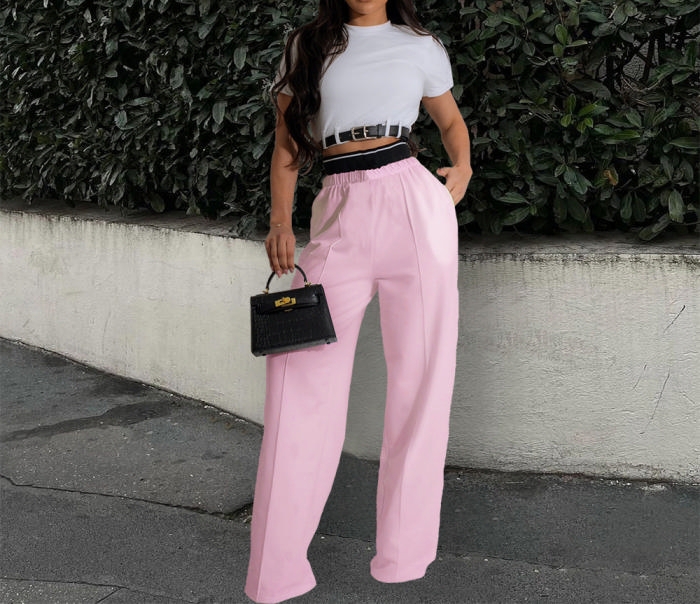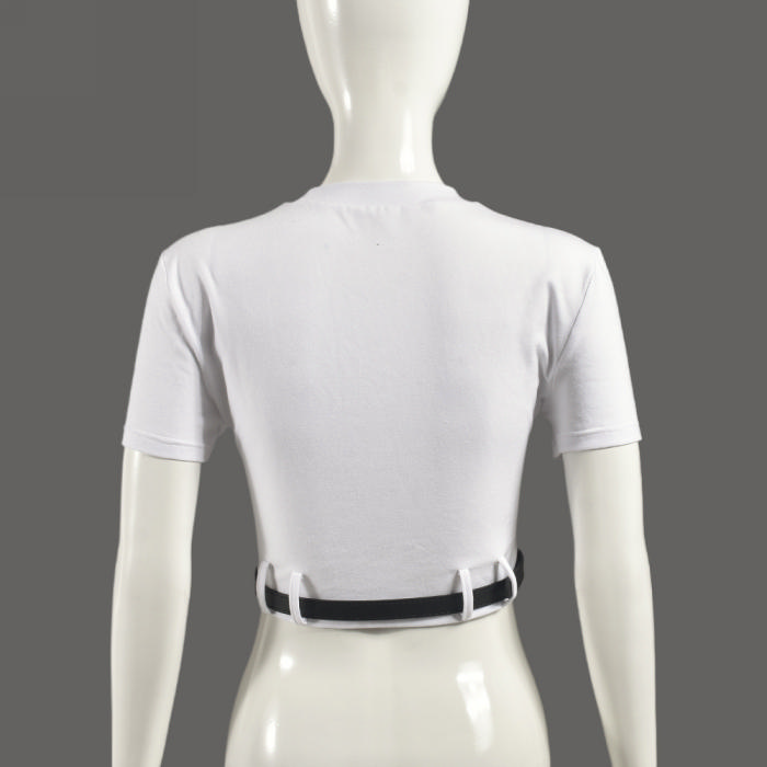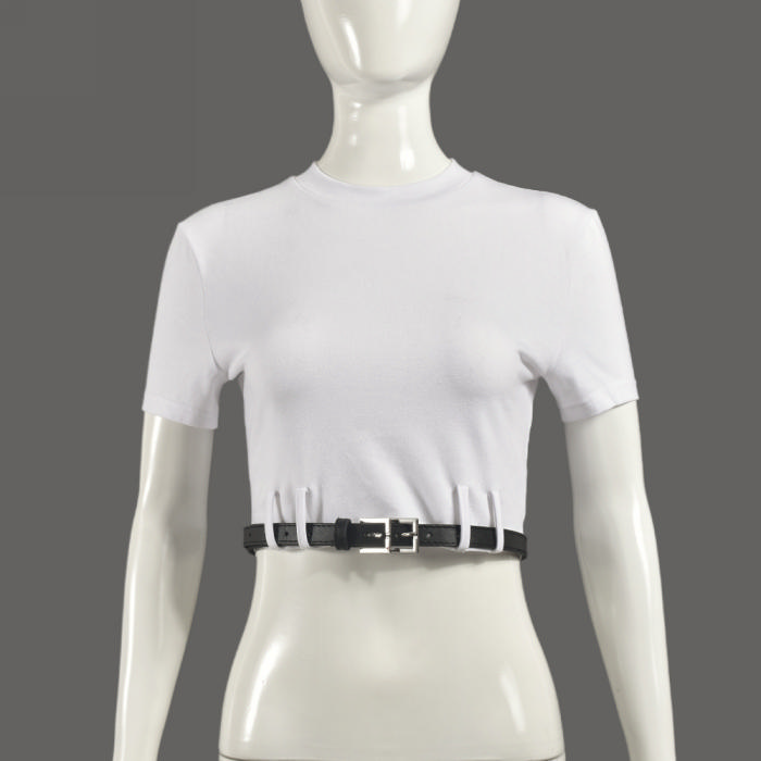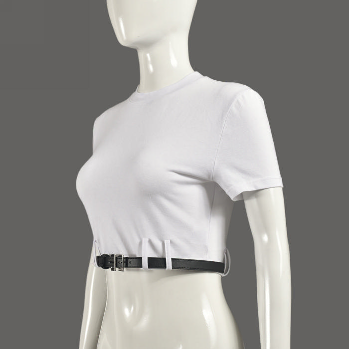 (Only Tops,Real Image)2024 Styles Women Summer Round Neck Crop Top Short Sleeve Belted Western Style T-ShirtSKU: #CF75056-1