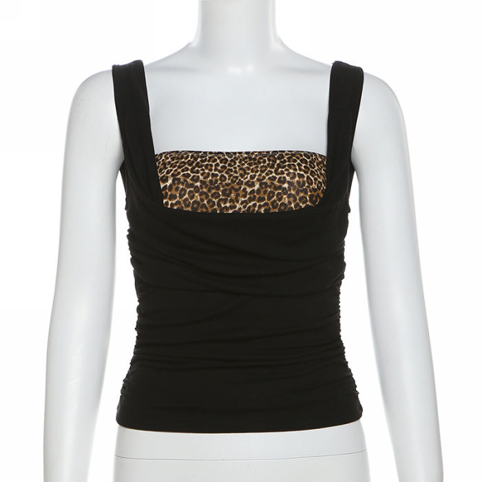 (Only Tops,Real Image)2024 Styles Women Summer Sexy Tight-Fit Leopard Print Bandeau Low-Neck Ruched TopSKU: #CF77775-1