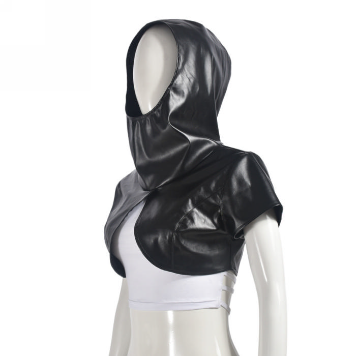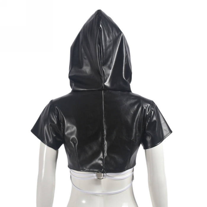 (Only Tops,Real Image)2024 Styles Women Summer Split Hooded PU Leather Western Style Super Short Vest TopSKU: #CF75057-1