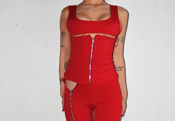 (Only Tops,Red)2024 Styles Women Fashion Open-Work Design Zippered Square Neck Sleeveless TopSKU: #CF76165-3