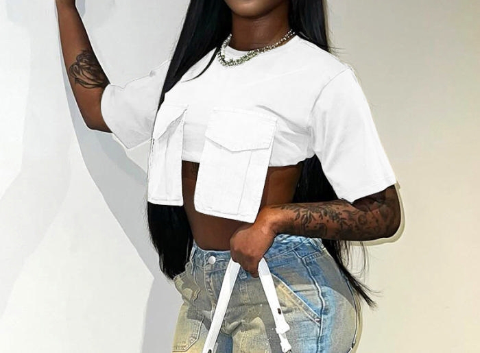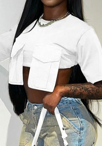 (Only Tops)(White)2024 Styles Women Sexy&Fashion Sprint/Summer TikTok&Instagram Round Neck Front Pocket Tank TopsSKU: #CF69022-2