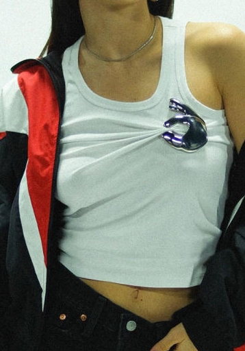 (Only Tops,White)2024 Styles Women Summer Sleeveless Color-Blocked Zippered RomperSKU: #CF75069-2