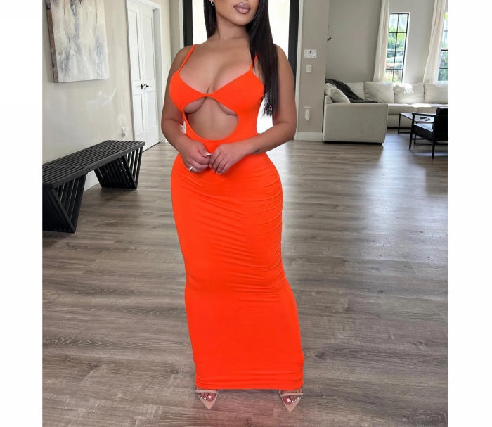 (Orange)2022 Styles Women Sexy Spring&Winter TikTok&Instagram Styles Cut Out Strap Maxi DressSKU: #CF79005-5