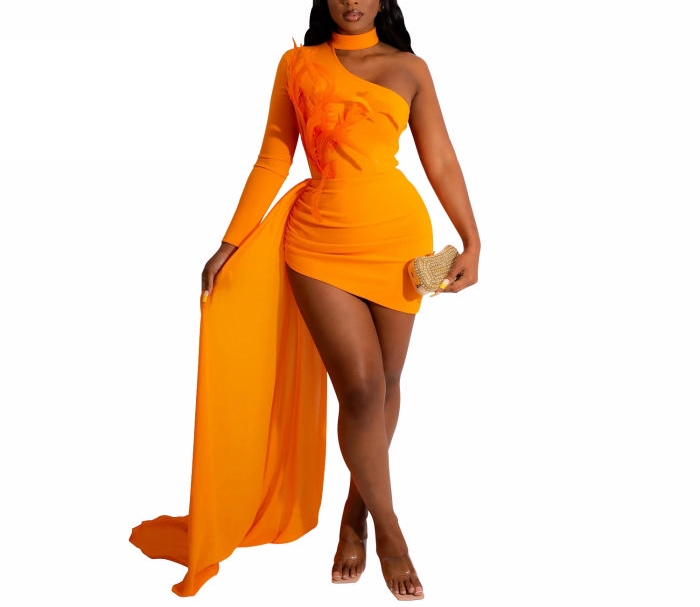 (Orange)2022 Styles Women Sexy Spring&Winter TikTok&Instagram Styles Irregular Maxi DressSKU: #CF79003-3