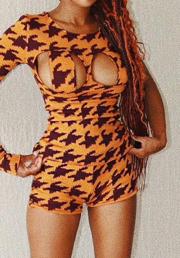 (Orange)2023 Styles Women Sexy&Fashion Autumn/Winter TikTok&Instagram Styles Print Cut Out RomperSKU: #CF47793-2