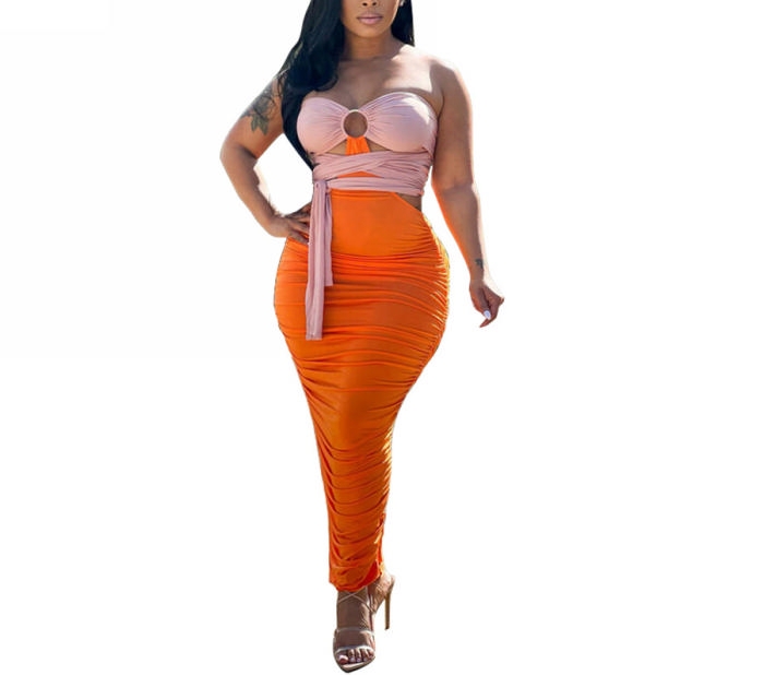 (Orange)2023 Styles Women Sexy&Fashion Spring&Summer TikTok&Instagram Styles Cut Out Ruffle Maxi DressSKU: #OU192-2