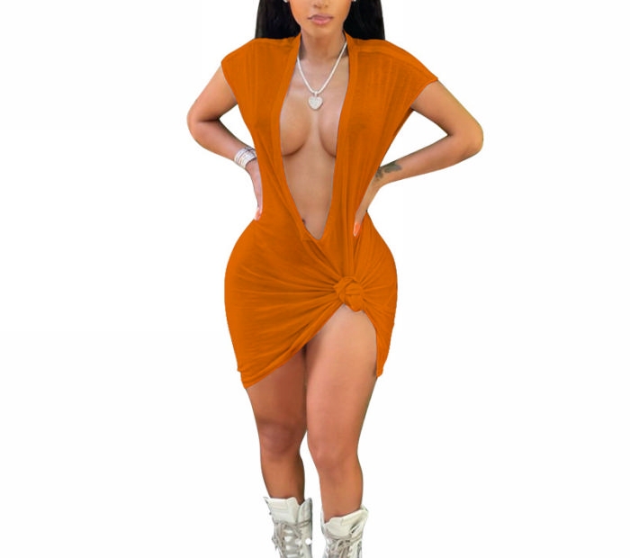 (Orange)2023 Styles Women Sexy&Fashion Spring&Summer TikTok&Instagram Styles Deep V Neck Mini DressSKU: #OU190-2