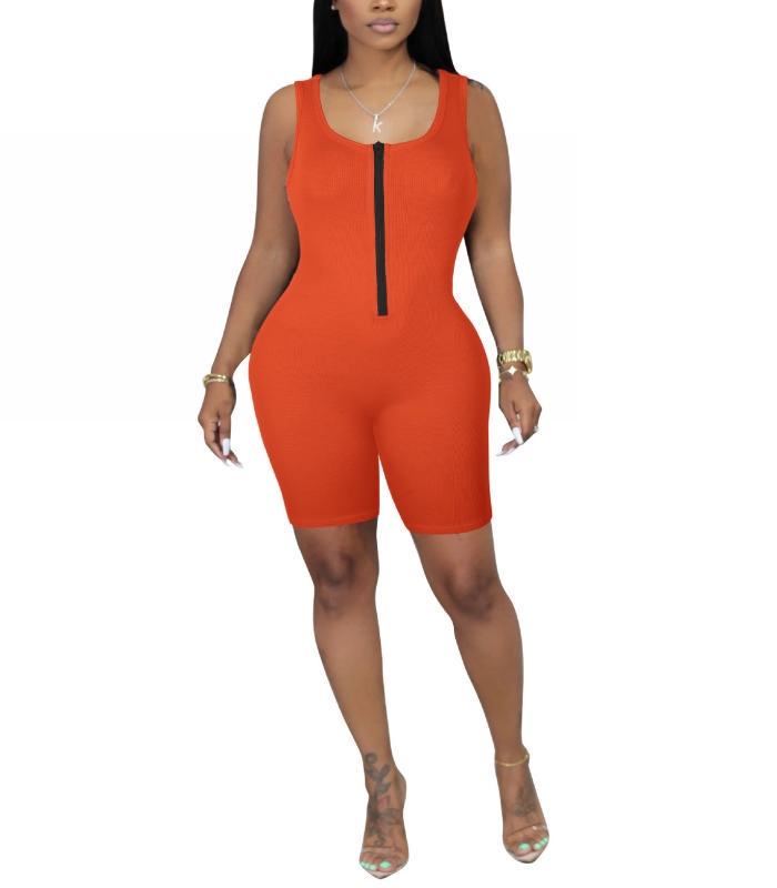 (Orange)2023 Styles Women Sexy&Fashion Spring&Summer TikTok&Instagram Styles Front Zipper RomperSKU: #OEM5876-6