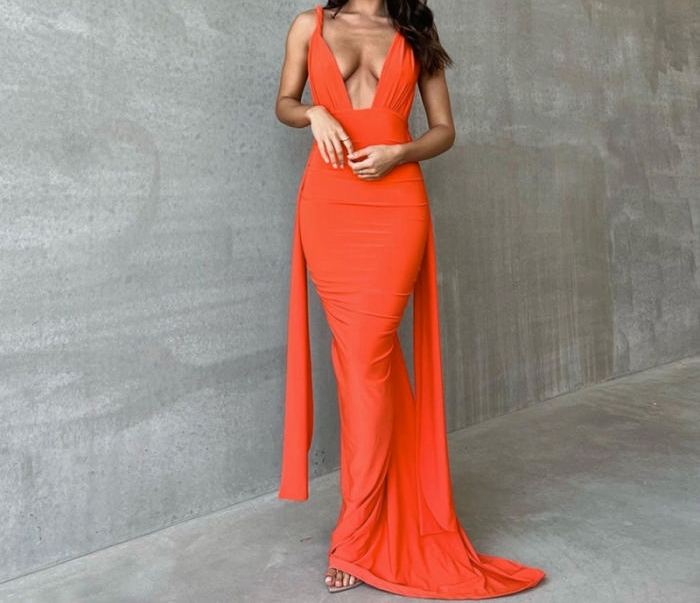 (Orange)2023 Styles Women Sexy&Fashion Spring&Summer TikTok&Instagram Styles Halter Maxi DressSKU: #CF88078-4