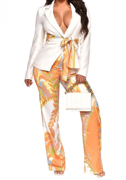 (Orange)2023 Styles Women Sexy&Fashion Spring&Summer TikTok&Instagram Styles Loose Casual Print Two Piece SuitSKU: #CF82034-2