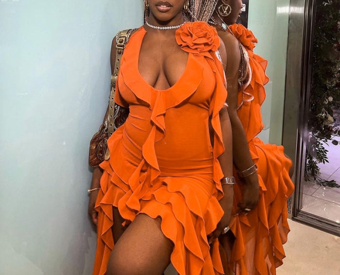 (Orange)2023 Styles Women Sexy&Fashion Spring&Summer TikTok&Instagram Styles Mesh Ruffle Irregular Mini DressSKU: #CF22915-3