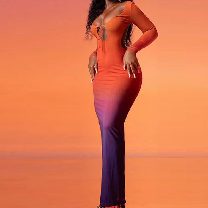 (Orange)2023 Styles Women Sexy&Fashion Spring&Summer TikTok&Instagram Styles Round Neck Long Sleeve Maxi DressSKU: #CF83230-2