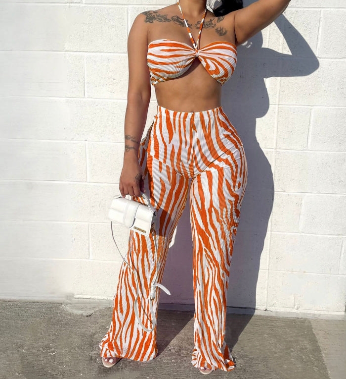 (Orange)2023 Styles Women Sexy&Fashion Spring&Summer TikTok&Instagram Styles Striped Two Piece SuitSKU: #OM484-6