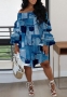 (Orange)(Plus Size)2022 Styles Women Fashion Spring&Winter TikTok&Instagram Styles Print Off Shoulder Irregular Hem Mini DressSKU: #XF27257-2