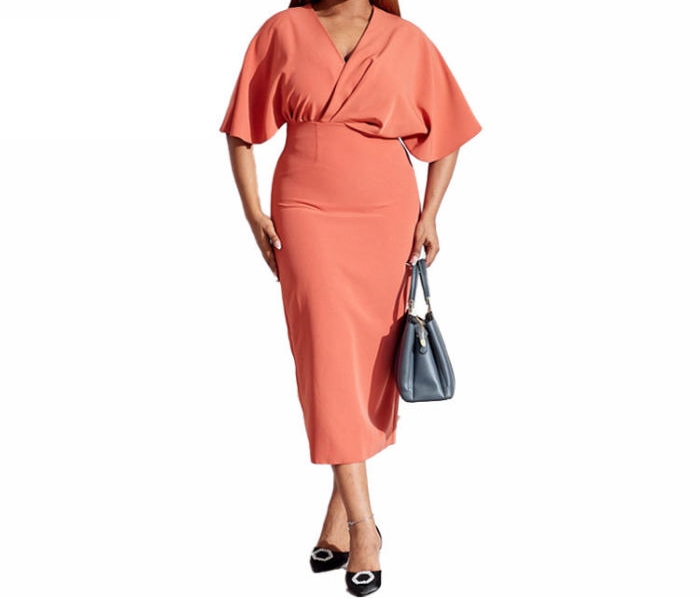 (Orange)(Plus Size)2023 Styles Women Sexy&Fashion Spring&Summer TikTok&Instagram Styles Loose Midi Sleeve Two Piece DressSKU: #XF27352-2