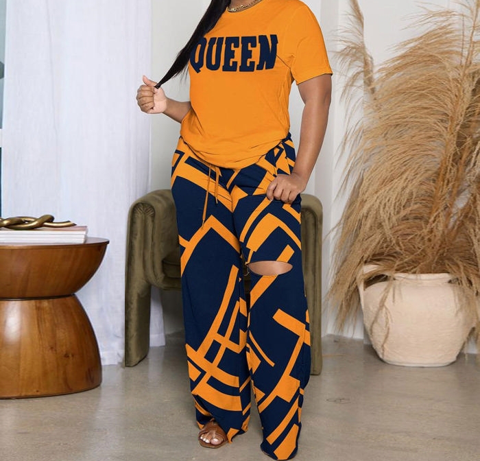 (Orange)(Plus Size)2023 Styles Women Sexy&Fashion Spring&Summer TikTok&Instagram Styles Loose Two Piece SuitSKU: #XF27345-3