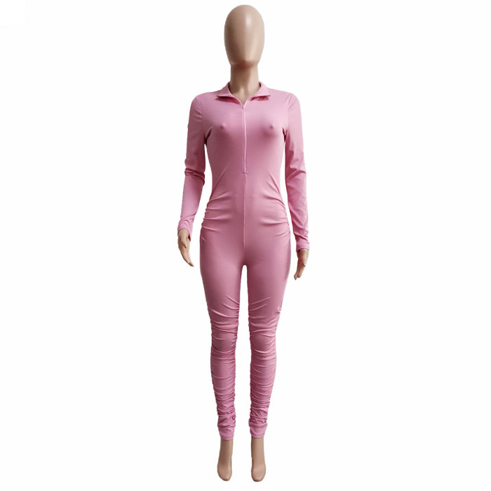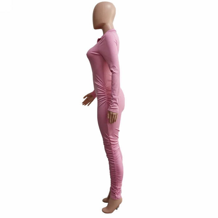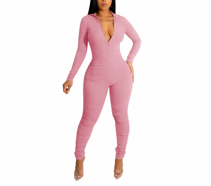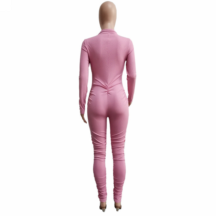 (Pink)2022 Styles Women Fashion Spring&Winter TikTok&Instagram Styles Deep V Neck Solid Color JumpsuitSKU: #XF82081-2