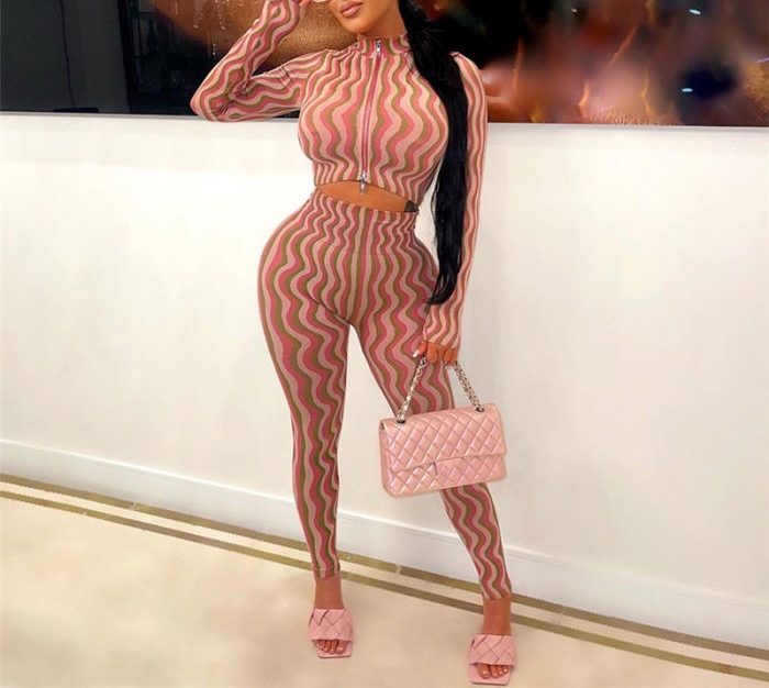 (Pink)2022 Styles Women Fashion Spring&Winter TikTok&Instagram Styles Purple Front Zipper Corp Tops+Long Pants 2 Piece SuitSKU: #CF77108-2
