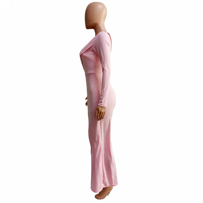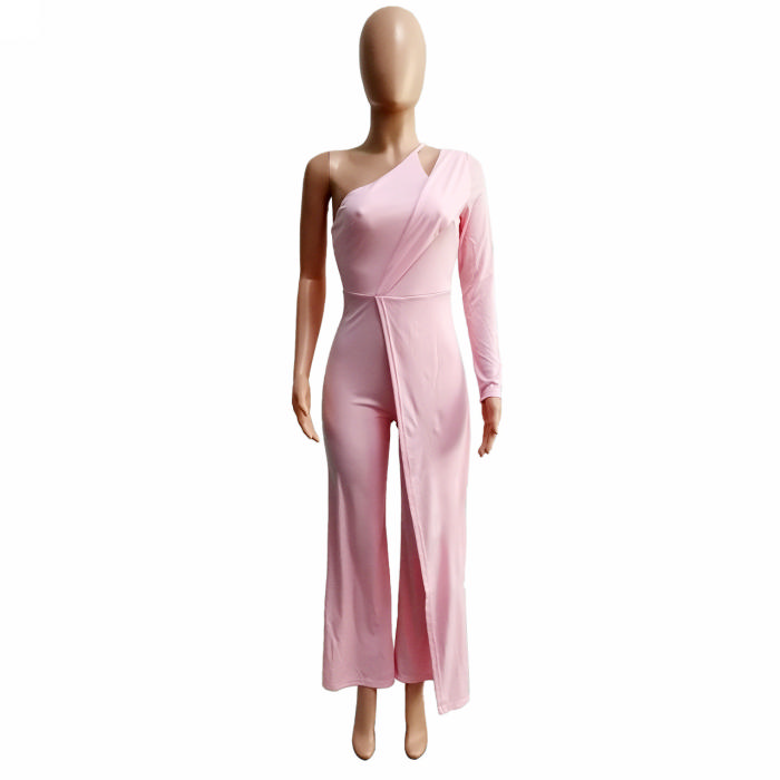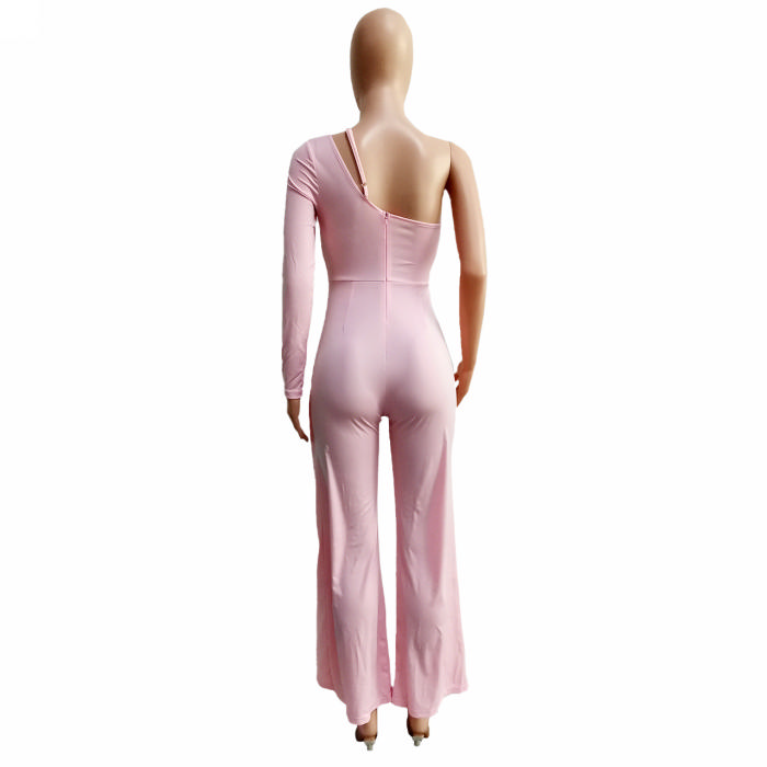 (Pink)2022 Styles Women Fashion Spring&Winter TikTok&Instagram Styles Single Shoulder Long Sleeve JumpsuitSKU: #XF82085-1