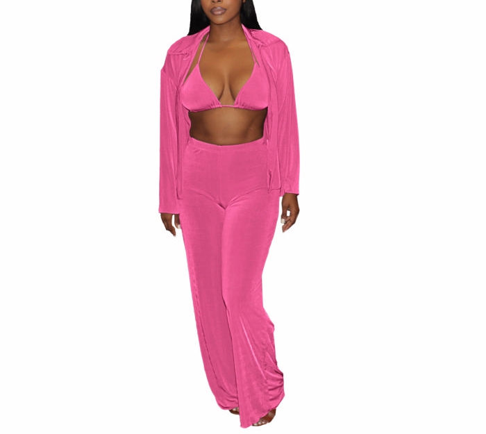 (Pink)2022 Styles Women Fashion Spring&Winter TikTok&Instagram Styles Solid Color Velvet Three Piece SuitSKU: #XF82060-3
