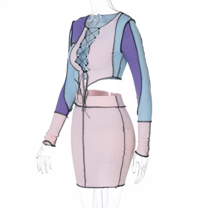 (Pink)2022 Styles Women Sexy Spring&Winter TikTok&Instagram Styles Lace Up Two Piece DressSKU: #TP013-2