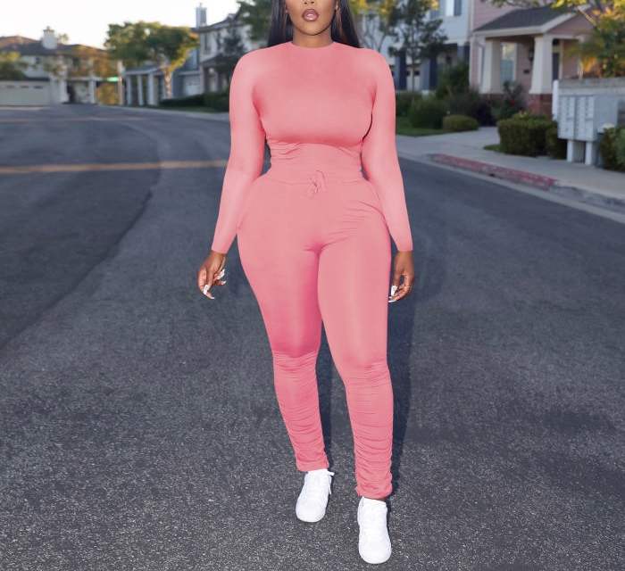 (Pink)2022 Styles Women Sexy Spring&Winter TikTok&Instagram Styles Solid Color Two Piece SuitSKU: #XF13448-2