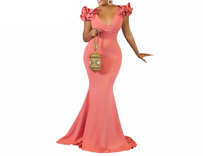 (Pink)2023 Styles Women Sexy&Fashion Autumn/Winter TikTok&Instagram Styles Deep V Neck Hem Maxi DressSKU: #XF73041-6