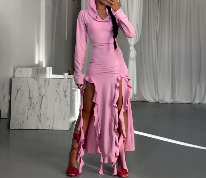 (Pink)2023 Styles Women Sexy&Fashion Autumn/Winter TikTok&Instagram Styles Hoodie Tassel Maxi DressSKU: #XF62632-5