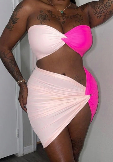 (Pink)2023 Styles Women Sexy&Fashion Spring&Summer TikTok&Instagram Styles Contrast Color Two Piece DressSKU: #CF382235-3