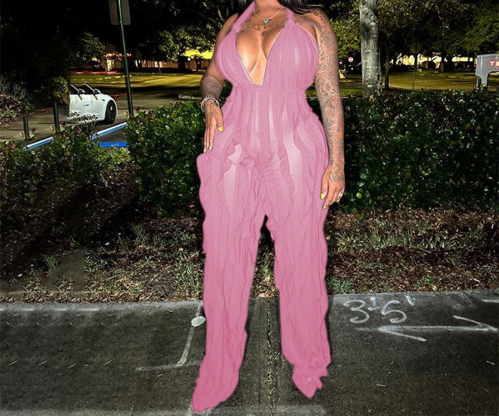 (Pink)2023 Styles Women Sexy&Fashion Spring&Summer TikTok&Instagram Styles Halter Backless JumpsuitSKU: #CF83195-5