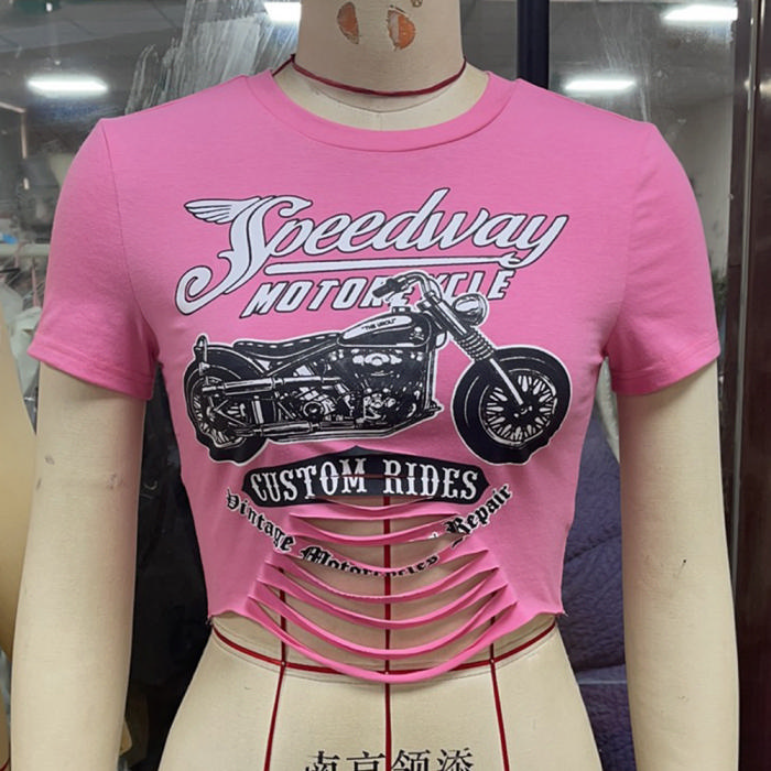 (Pink)2023 Styles Women Sexy&Fashion Spring&Summer TikTok&Instagram Styles Print Ripped TeeSKU: #CF59550-4